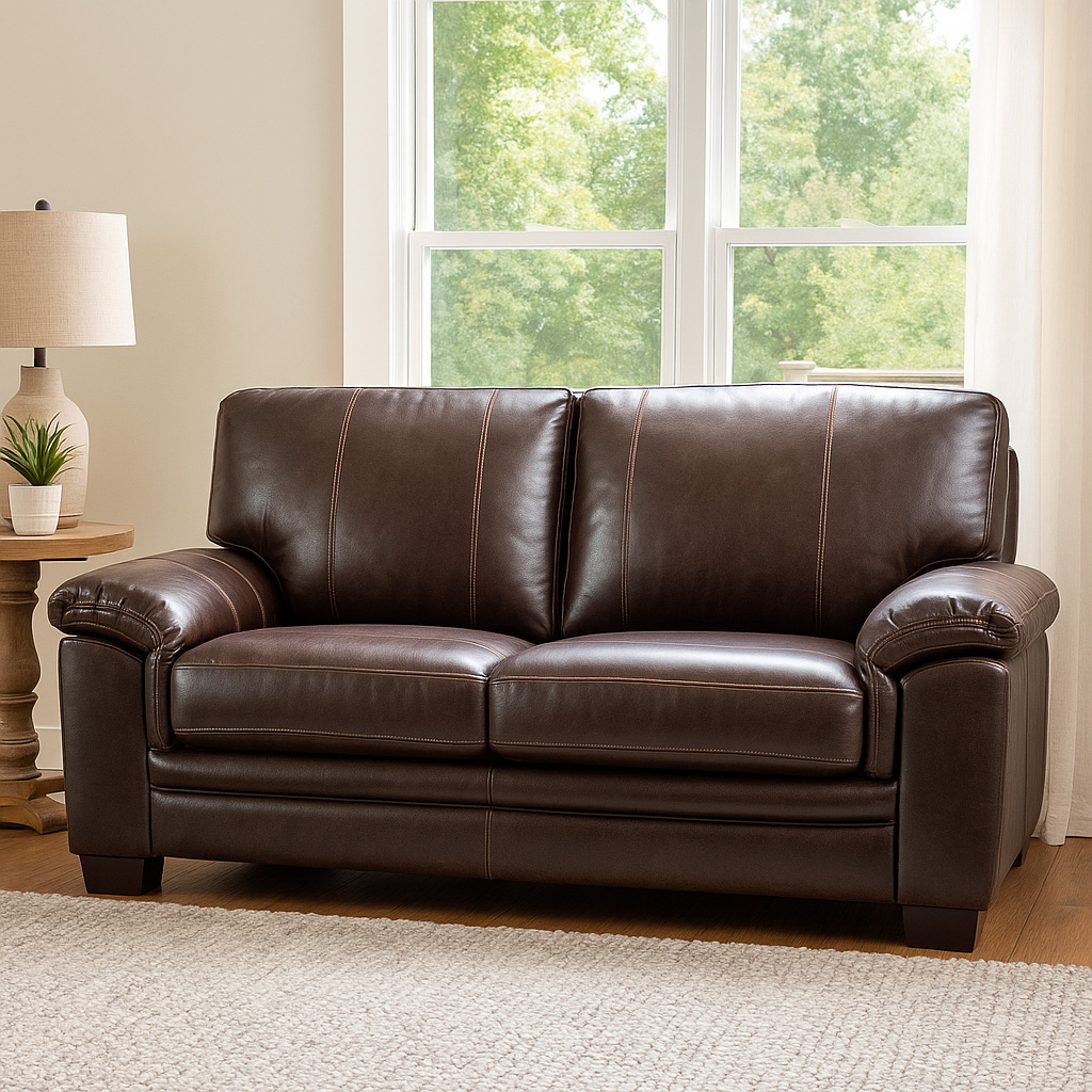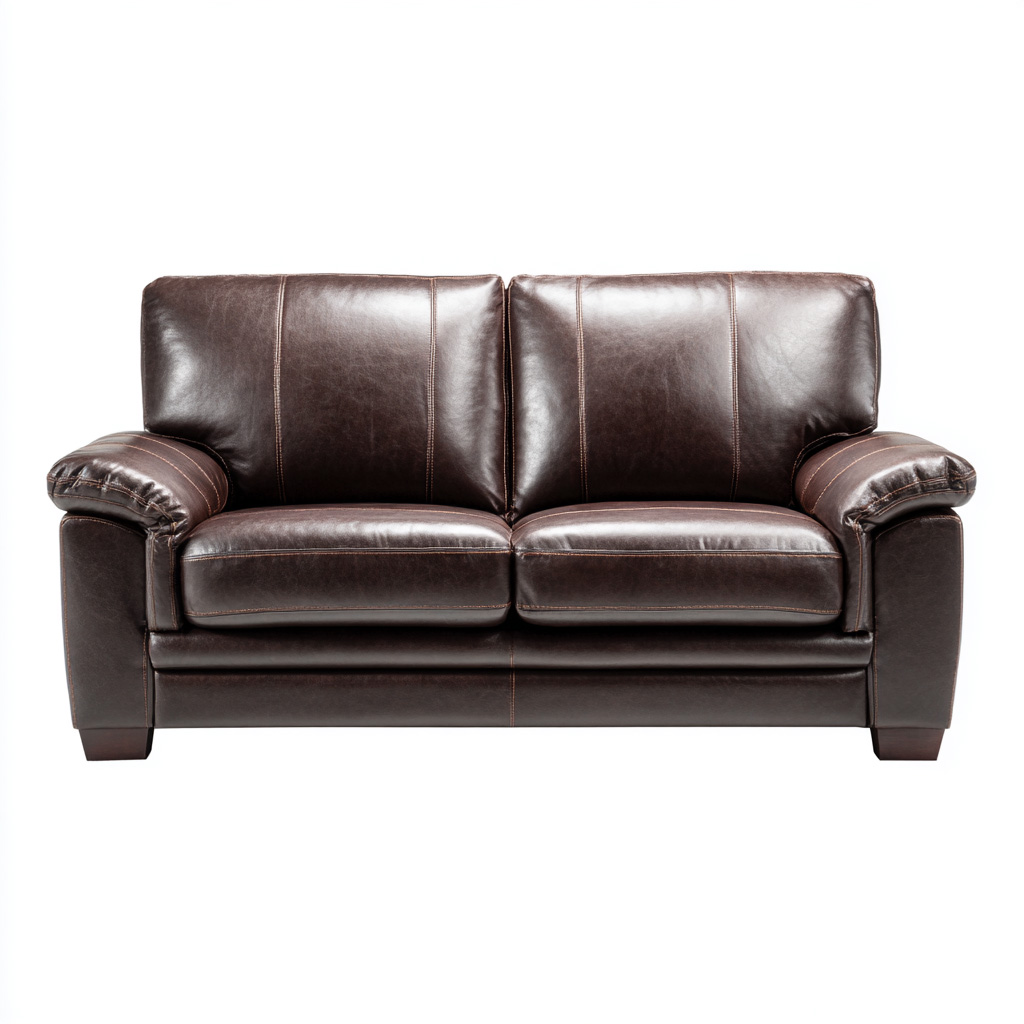 Moderno sofá de dos plazas de cuero marrón para sala y oficina